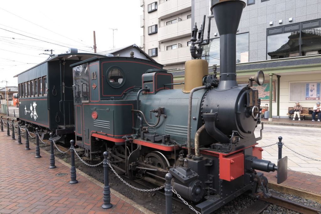 道後温泉駅には、ぼっちゃん列車が展示されています。