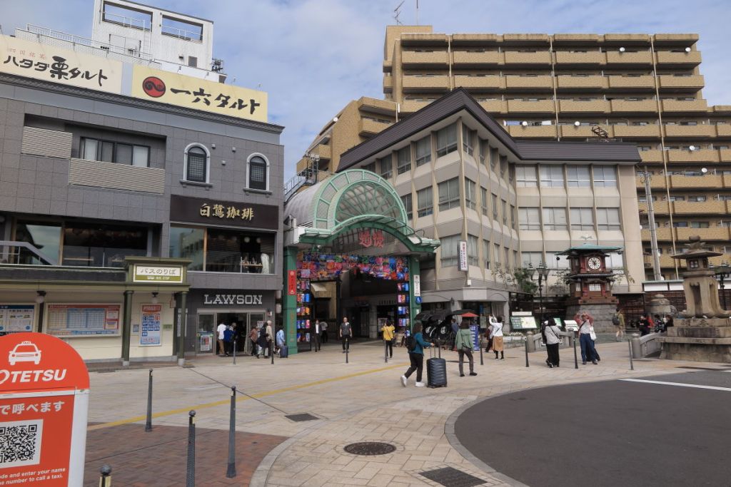 道後温泉の温泉街には他の温泉地に比べ賑わいが残っています。