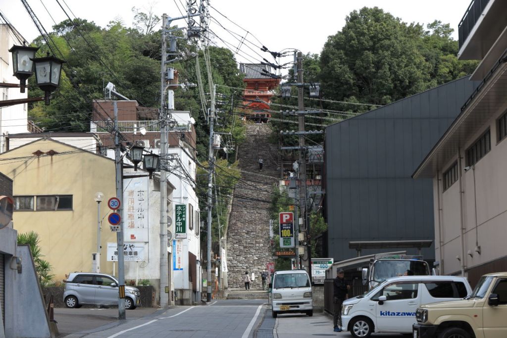 ふなやの前の道の奥には国の重要文化財に指定されたいる社殿がある伊佐爾波神社の135段の階段がありますが、とても登る気にはなれませんでした。