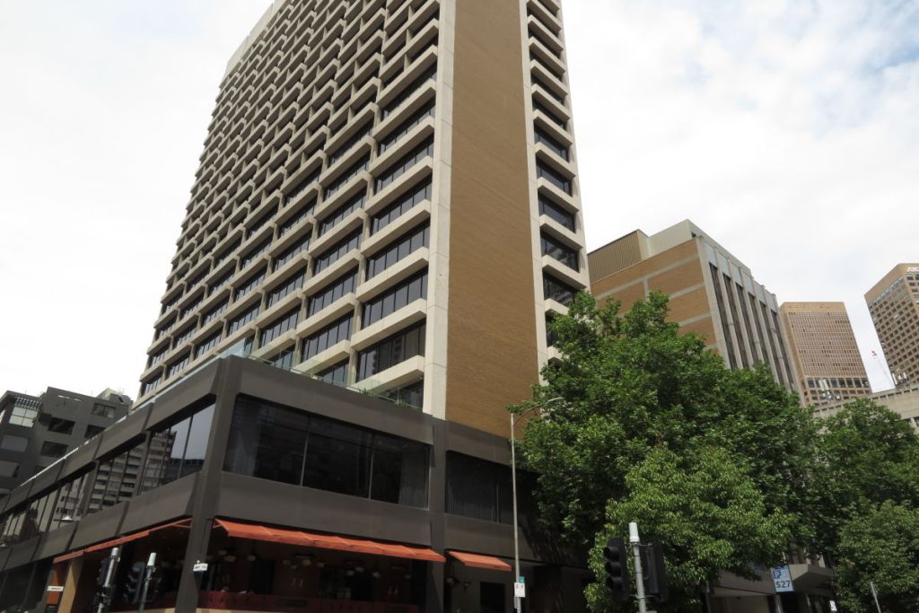 まずはメルボルン最古のショッピング・アーケードであるロイヤルアーケードに向かいました。アーケードの前にはH&Mが入っている古い建物がありました。