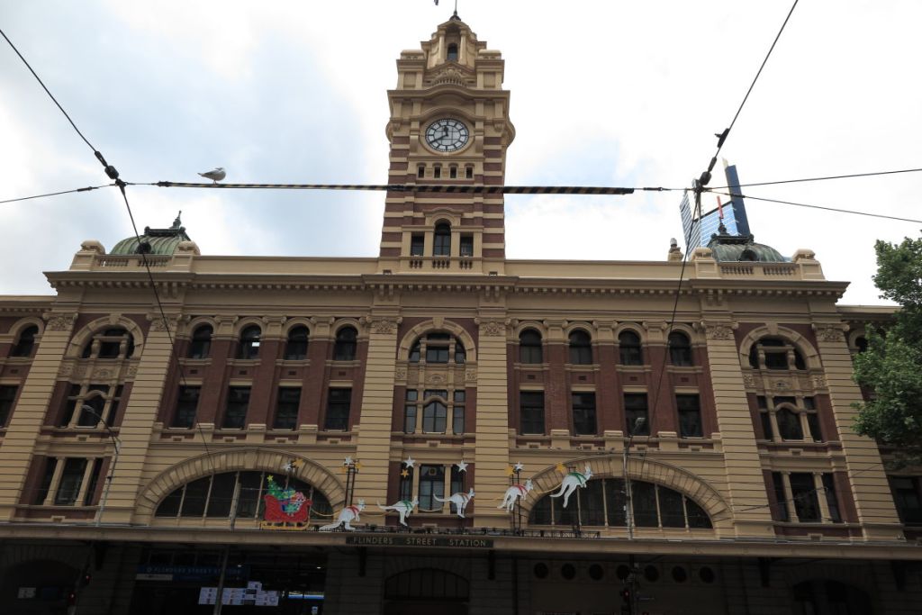 トラムに乗り1854年にオーストラリア最初の鉄道の駅として開業したフリンダース・ストリート駅前で降りました。