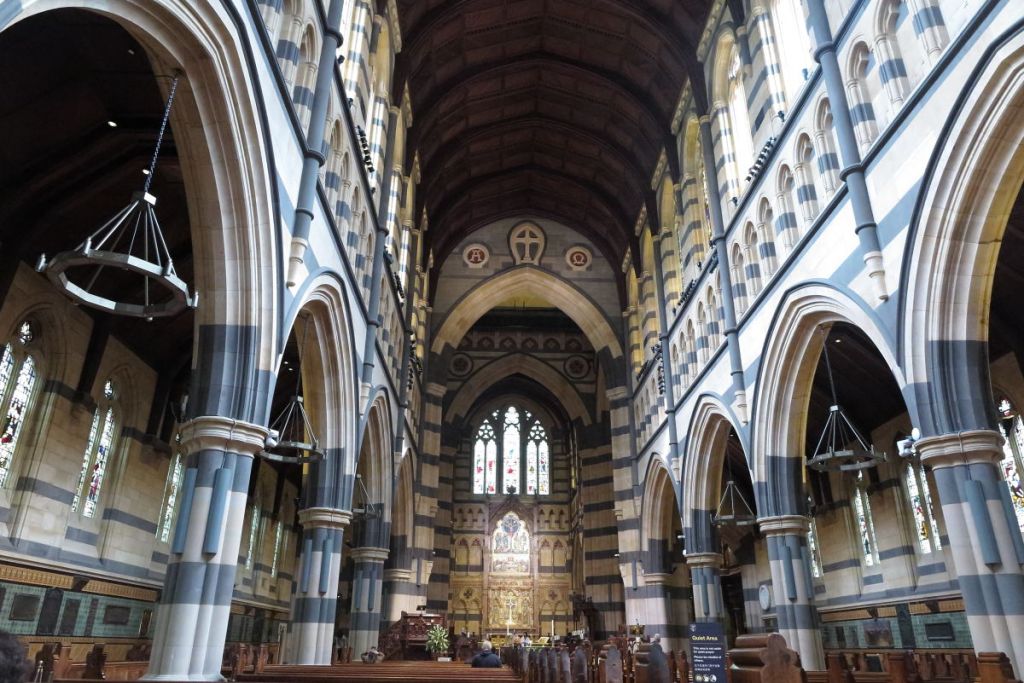 駅のはす向かいにSt. Paul’s Cathdralがあるので中を見ることにしました。この教会は英国国教会のメルボルン及びビクトリア州全域の母教会となっています。内部もとても立派な作りです。