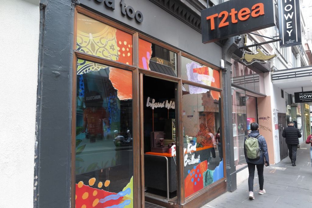 またしばらく歩くとT2teaのお店があります。T2teaもメルボルンが発祥の地です。
