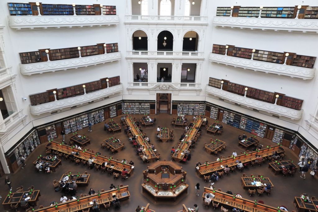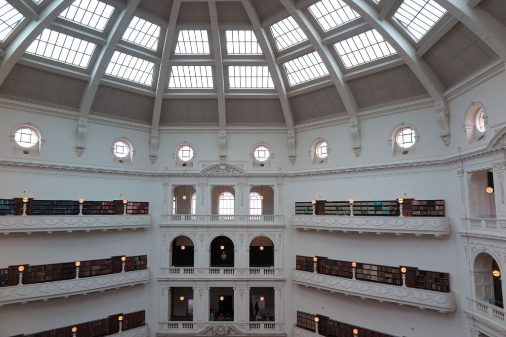 トラムに乗り世界で最も美しい図書館と言われているビクトリア州立図書館に行きました。この図書館は1854年に設立されたオーストラリアで最も古い図書館です。
