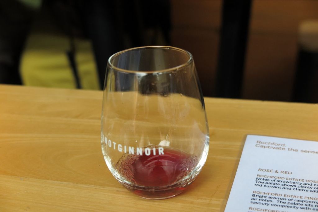 ここでは3杯ロゼ、白ワイン、赤ワインを試飲しました。写真の白ワインはシャルドネで赤ワインはピノノワールです。このヤラバレーの気候はシャルドネ種とピノノワール種のブドウの栽培に適しており、その他の品種は他の場所にあるぶどう畑で栽培されているそうです。