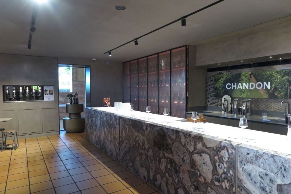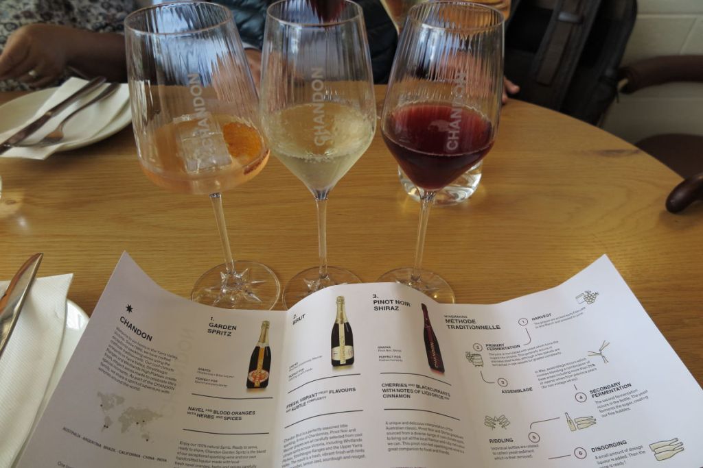 次に向かったのはフランスのモエ・エ・シャンドンが運営しているドメイン・シャンドンで昼食とともにここのワインを試飲します。ここのスパークリングはシャンパーニュで作られていないためシャンパンとは呼べませんが、製法はすべて同様に行っているのできめ細やかな泡となっています。