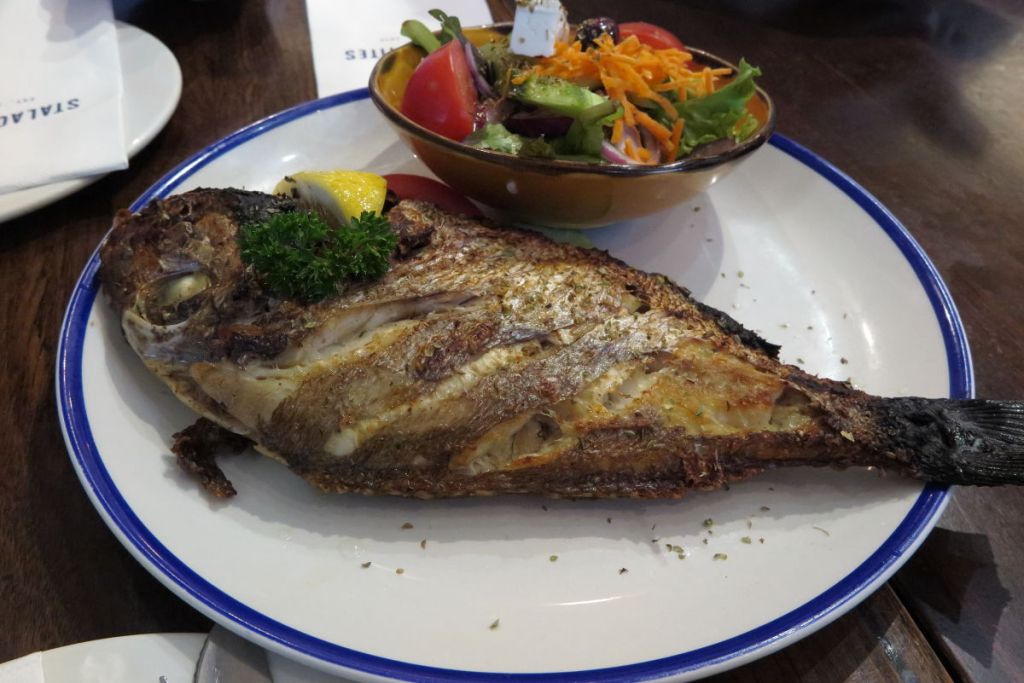 ここから再び1時間車を走らせてホテルで降ろしてもらいました。一休みした後にホテルから10分程度歩いたところにあるショッピングモールを見学し、その近くにあるSTALACTITESというギリシャ料理のお店で夕食としました。かなり人気のあるお店のようでした。