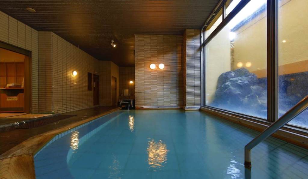 温泉はナトリウム塩化物泉のかけ流しで、冬の寒い時期には温まります。地下1階にある大浴場には内風呂に露天風呂が併設されています。写真は宿のHPのスクリーンショットです。