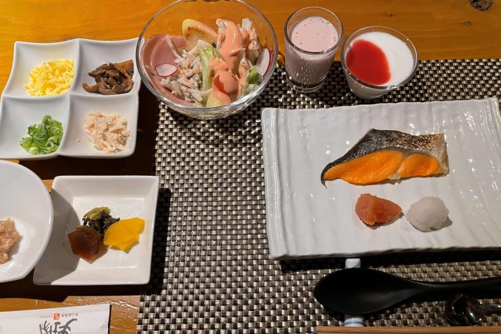 朝食も品数が多く朝から活力をもらえる内容でした。おりはし旅館は、離れを中心としたこじんまりした旅館ですが、素晴らしい温泉に加え、手抜きのない料理やスタッフのサービスなど高級感のある宿でした。