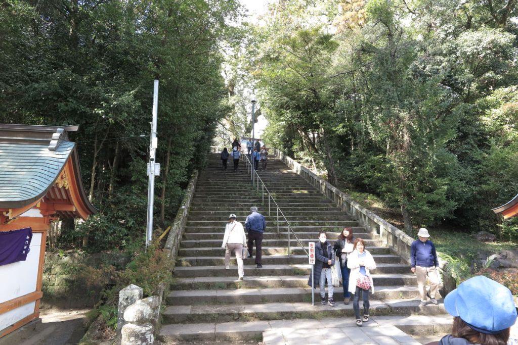 食事を終えてから鹿児島神宮に行きました。この神社は古くからある由緒ある神社ですが、本殿までの階段を見て、今の体力では厳しいので断念しました。階段の登り口には白馬の御神馬である鈴懸馬の餌やり場があるので、午年でもあり御神馬を見て満足しました。