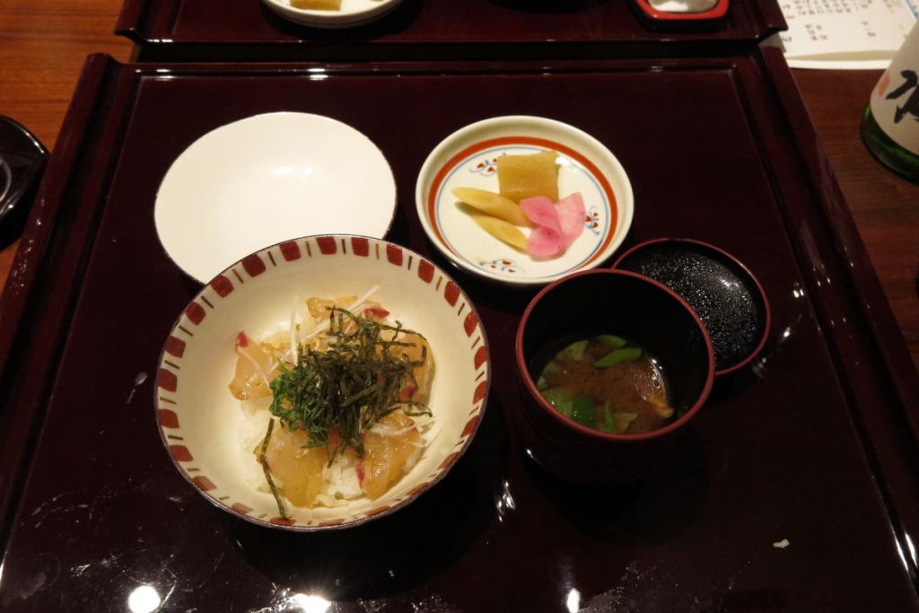 食事は西郷丼と名付けられていましたが、かんぱちの漬け丼でした。