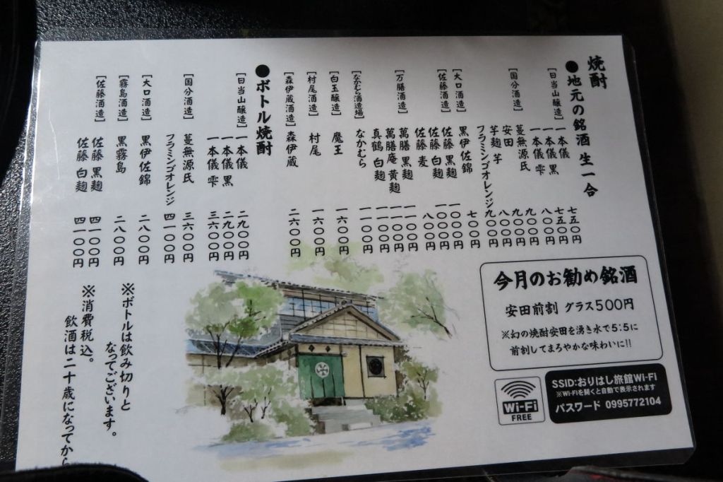 焼酎のリストにはまだ飲んだことのない銘柄もあり、今回は安田と同じ国分酒造のフラミンゴオレンジという変わった名前の焼酎にしました。これもなかなか手に入らないそうです。名前の通り柑橘系の香りがします。
