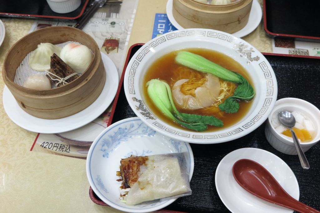 フカヒレ姿煮ラーメン、北京ダックロール巻き、小籠包、モモマン、エビ餃子、ミニちまきと杏仁豆腐のセットで2,026円と今年と同じ値段でお得なセットです。味も満足できる内容でした。