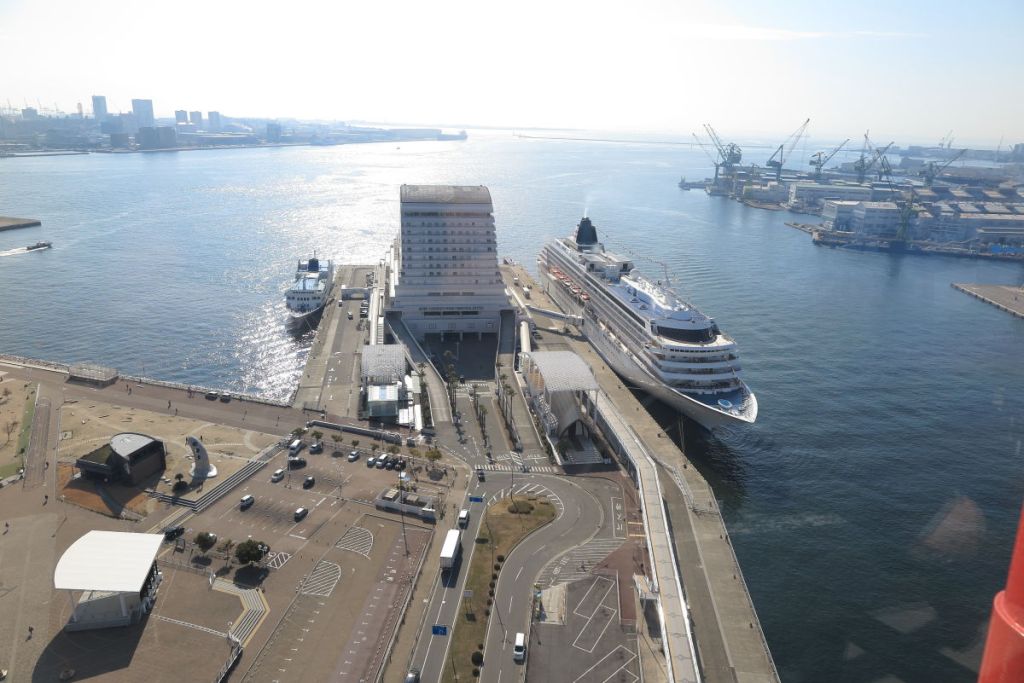 展望5階に展望フロアがあり360℃見渡すことができます。らせん状の階段を登れば上の屋上デッキに出ることができますが、かなりの階段数を上るので足の筋力の回復がまだまだなので断念しました。展望フロアからでも眺めはとてもよかったです。神戸港には客船の飛鳥が停泊していました。