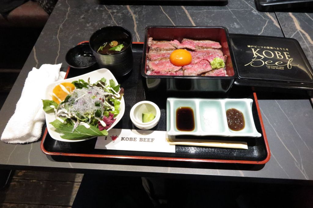 昼食時となったので再び元町に戻り、神戸牛黒沢に行きました。本格的なステーキのランチは高いので、手ごろな極上ステーキ重を注文しました。