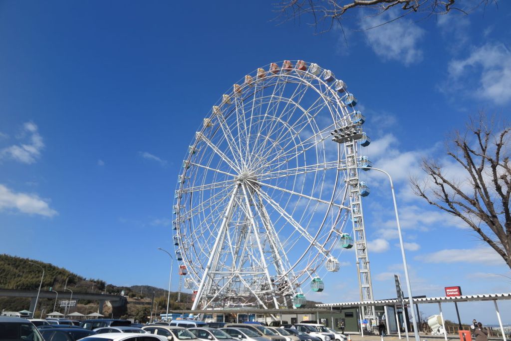 今日は淡路島に向かいます。まは明石海峡大橋を渡ってからすぐにある淡路サービスエリアに立ち寄りました。ここには観覧車もあります。ここから見る明石海峡大橋は絶景です。