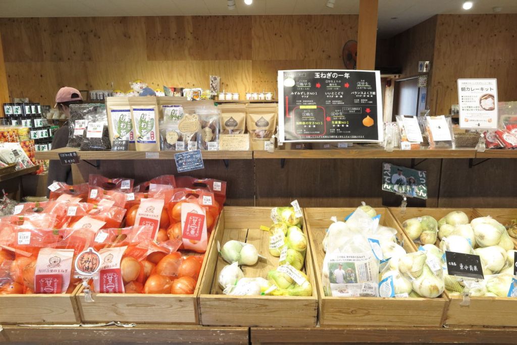 産直市場では海産物や特産の玉ねぎも販売していて、サラダ用の玉ねぎを購入しました。東京では玉ねぎが小さく高騰しているのでとてもお得感があります。